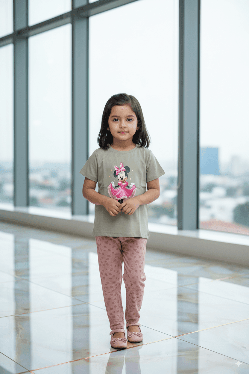 গার্লস লেগিংস এবং টি-শার্ট কম্বো সেট || Combo Code: OTL-D8 || Size 3-4 Years