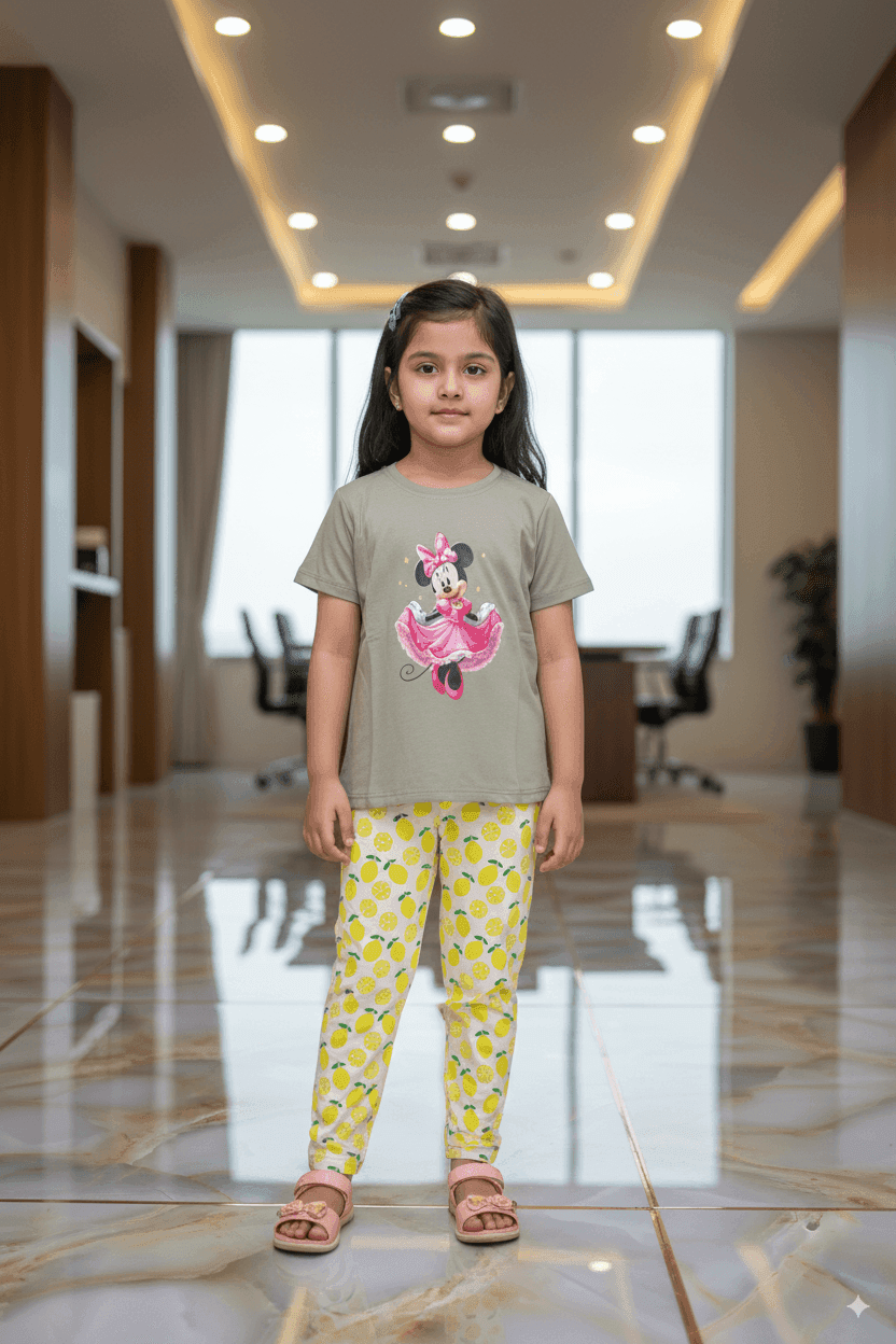 গার্লস লেগিংস এবং টি-শার্ট কম্বো সেট || Combo Code: OTL-D10 || Size 3-4 Years