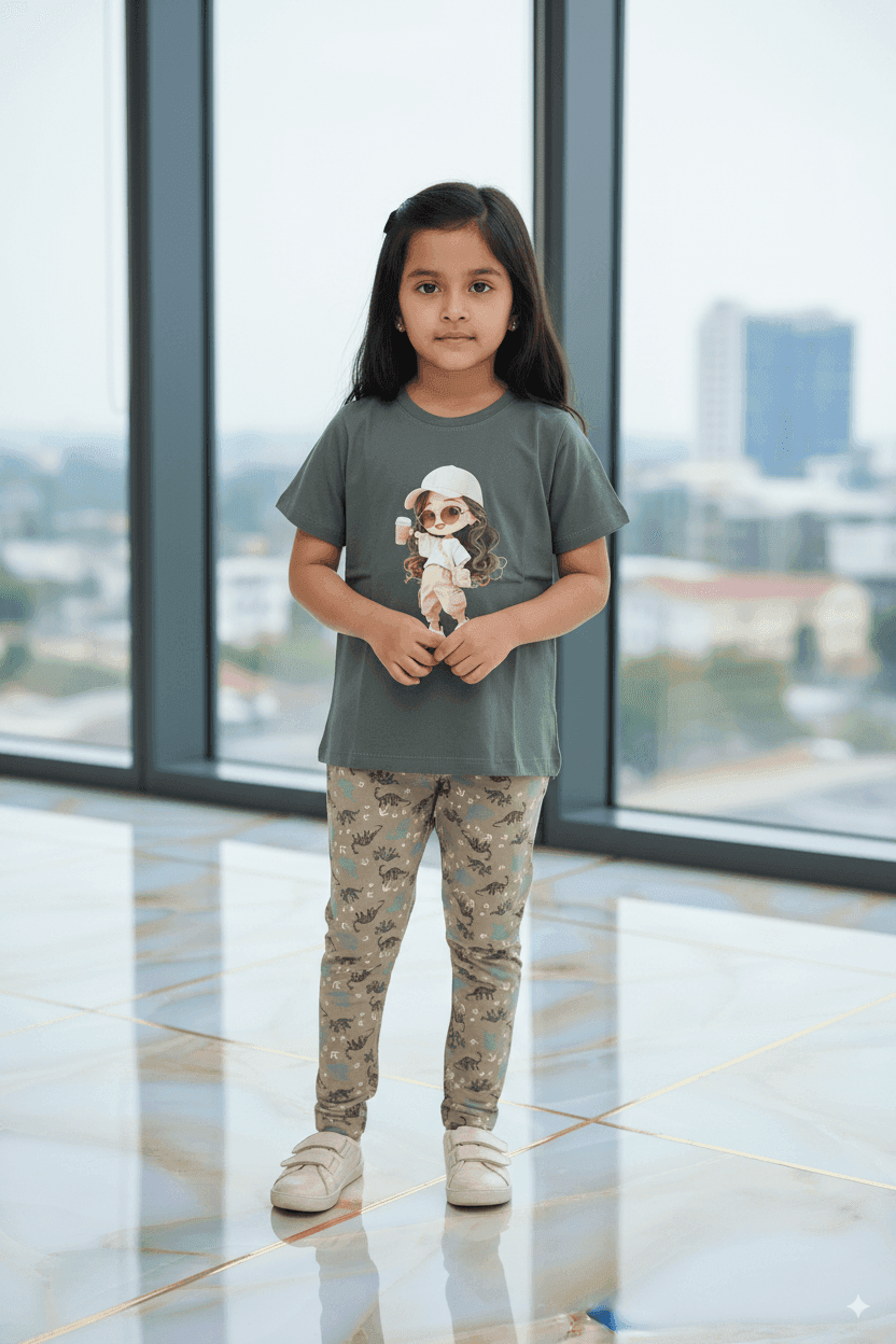 গার্লস লেগিংস এবং টি-শার্ট কম্বো সেট || Combo Code: OTL-D11 || Size 3-4 Years