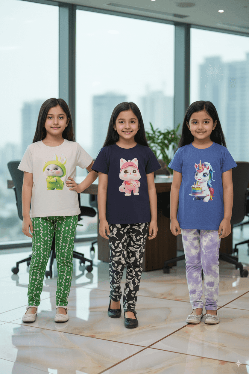 গার্লস লেগিংস এবং টি-শার্ট কম্বো সেট || Combo Code: OTL-D15 || Size 3-4 Years