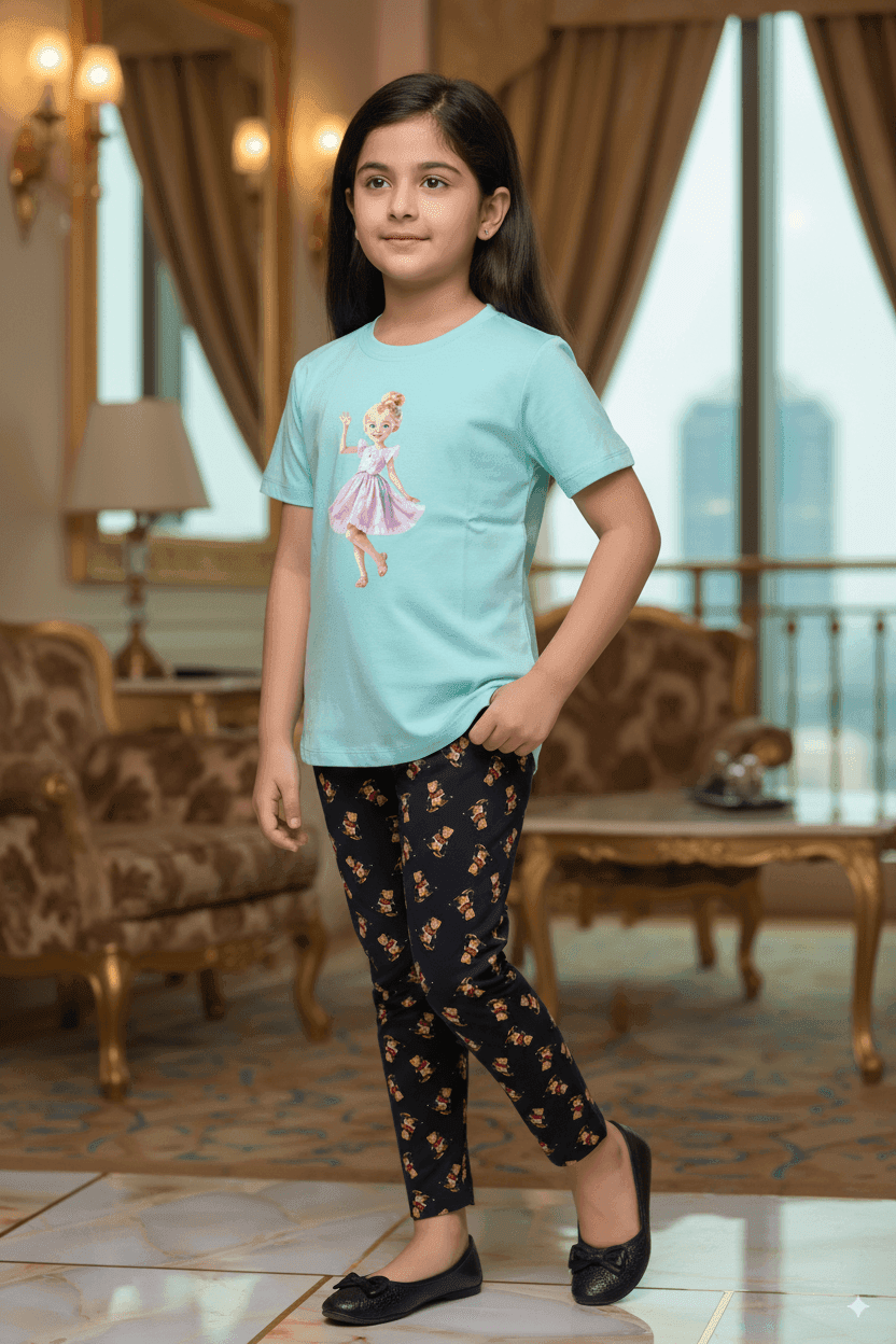 গার্লস লেগিংস এবং টি-শার্ট কম্বো সেট || Combo Code: OTL-A2 || Size 5-6 Years