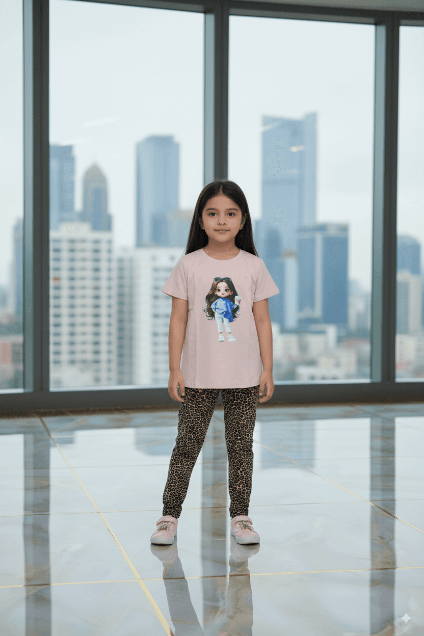 গার্লস লেগিংস এবং টি-শার্ট কম্বো সেট || Combo Code: OTL-A5 || Size 5-6 Years
