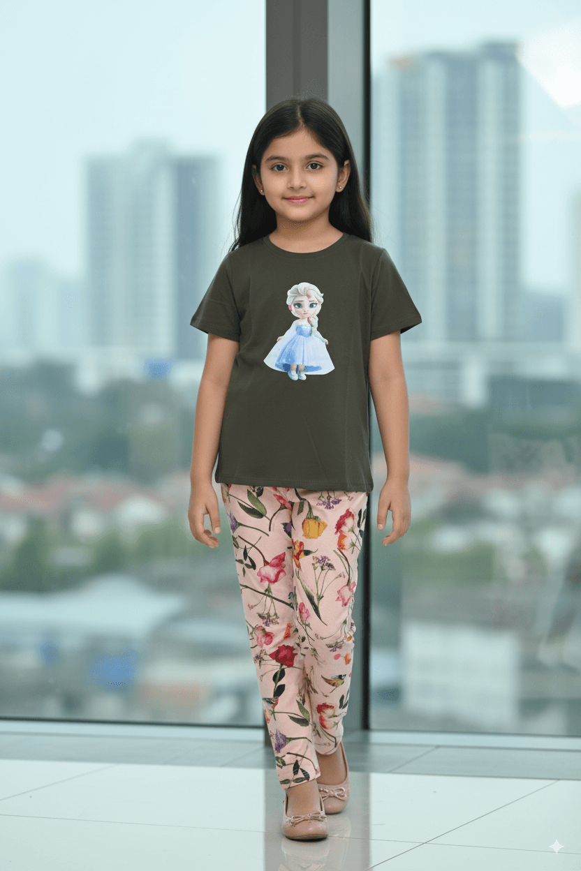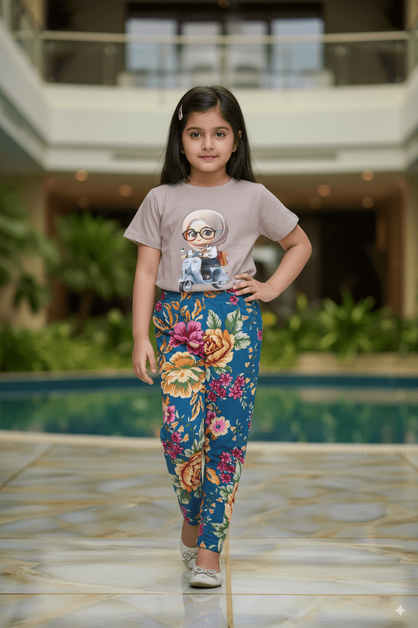 গার্লস লেগিংস এবং টি-শার্ট কম্বো সেট || Combo Code: OTL-A11 || Size 5-6 Years