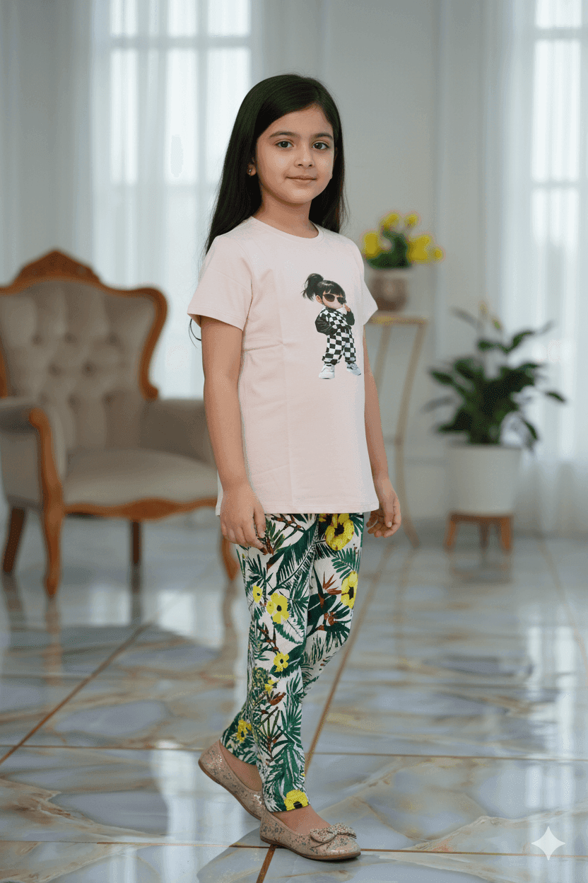 গার্লস লেগিংস এবং টি-শার্ট কম্বো সেট || Combo Code: OTL-1102 || Size 11-12 Years