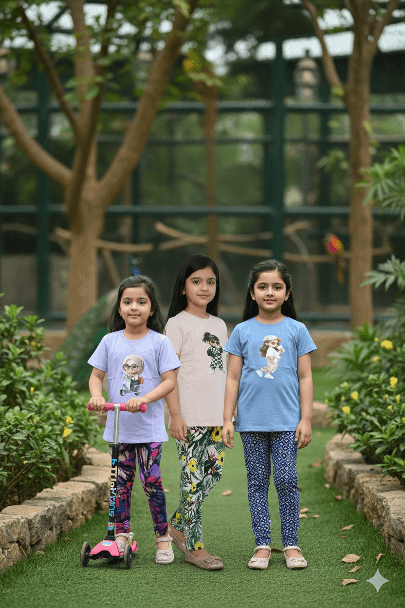 আপনার সন্তানের প্রতিদিনের আরামের সেরা সঙ্গী হয়ে উঠুক গার্লস লেগিংস এবং টি-শার্ট কম্বো সেট। ৯৫% প্রিমিয়াম কটন ও ৫% সুপার স্প্যানডেক্স দিয়ে তৈরি এই পোশাকটি অত্যন্ত নরম, শ্বাস-প্রশ্বাসের উপযোগী এবং স্কিন-ফ্রেন্ডলি—যা আপনার শিশুকে সারাদিন রাখবে কুল, আরামদায়ক ও ফুরফুরে।