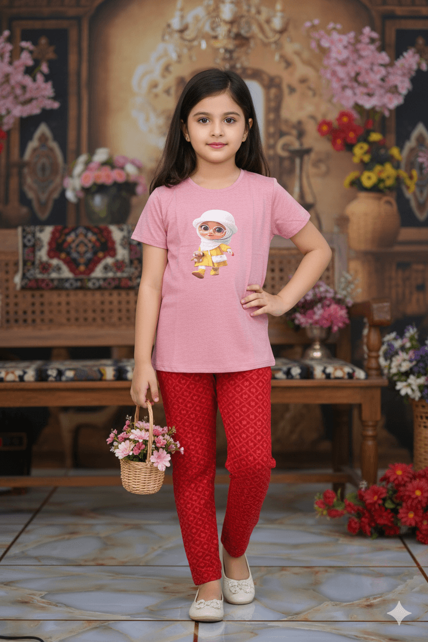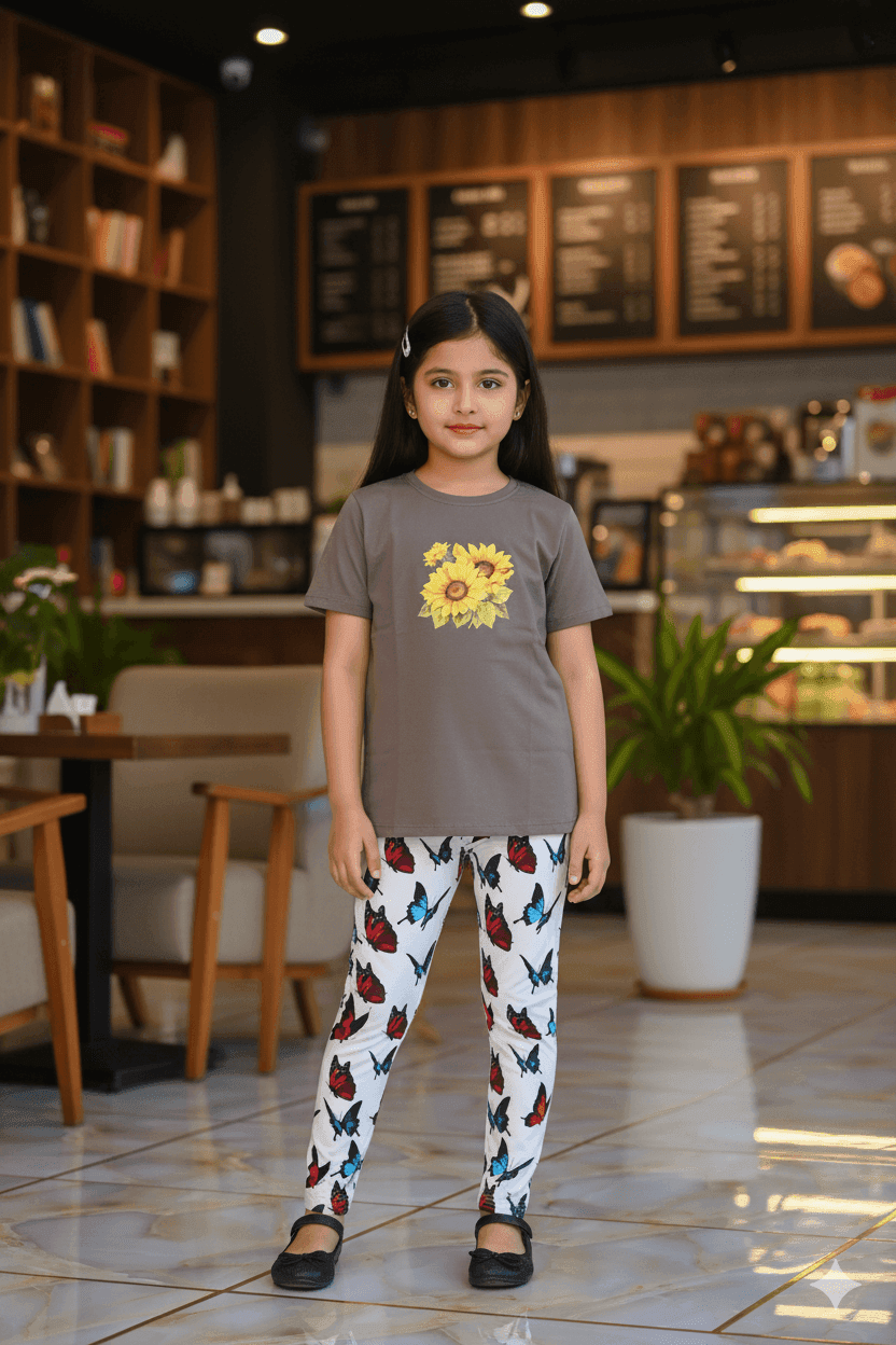 গার্লস লেগিংস এবং টি-শার্ট কম্বো সেট || Combo Code: OTL-1103 || Size 11-12 Years