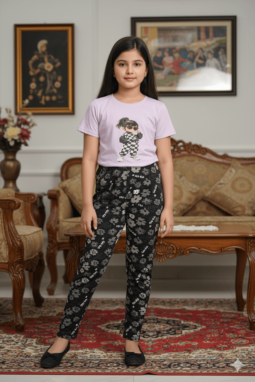 গার্লস লেগিংস এবং টি-শার্ট কম্বো সেট || Combo Code: OTL-1108 || Size 11-12 Years