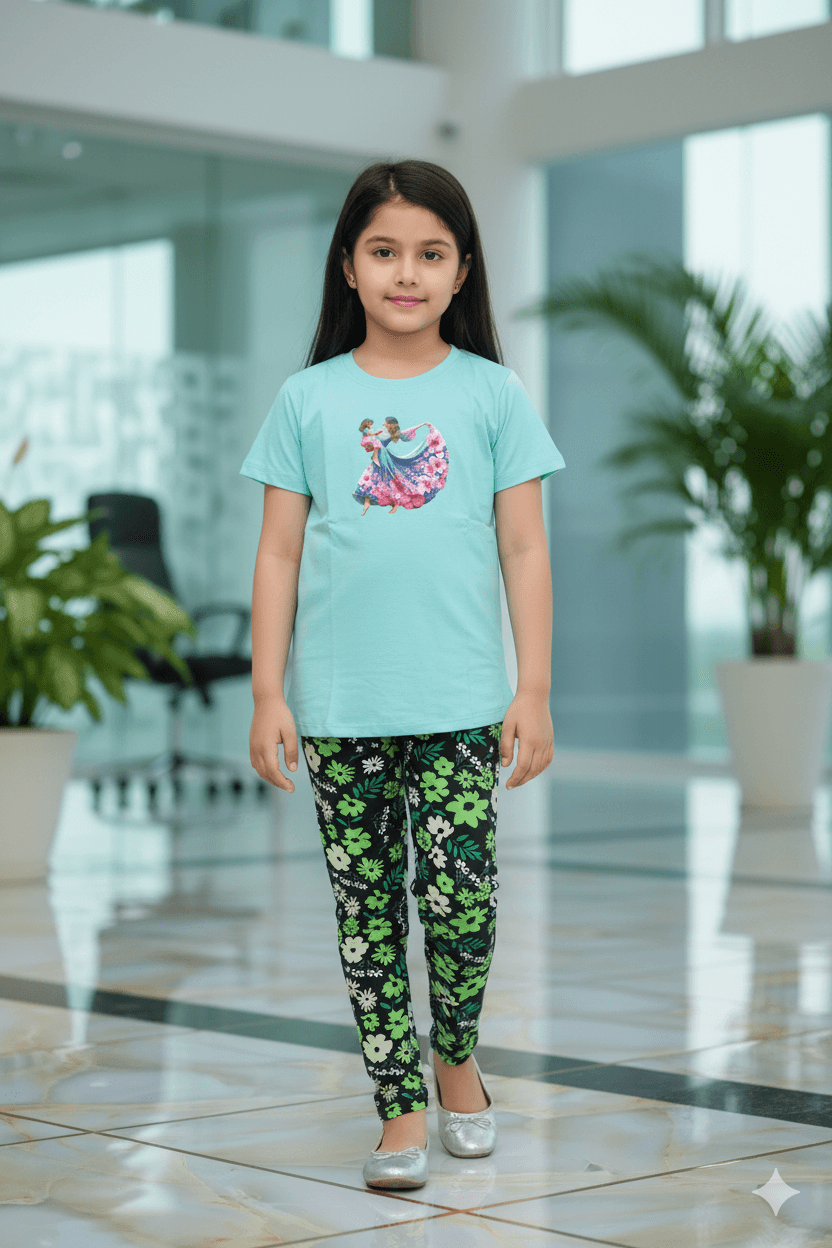 গার্লস লেগিংস এবং টি-শার্ট কম্বো সেট || Combo Code: OTL-901 || Size 9-10 Years