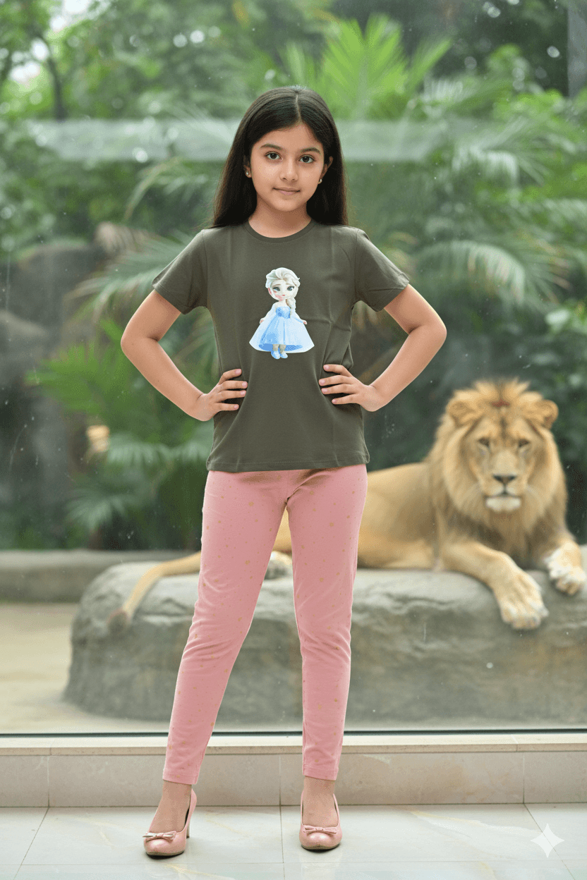 গার্লস লেগিংস এবং টি-শার্ট কম্বো সেট || Combo Code: OTL-906 || Size 9-10 Years