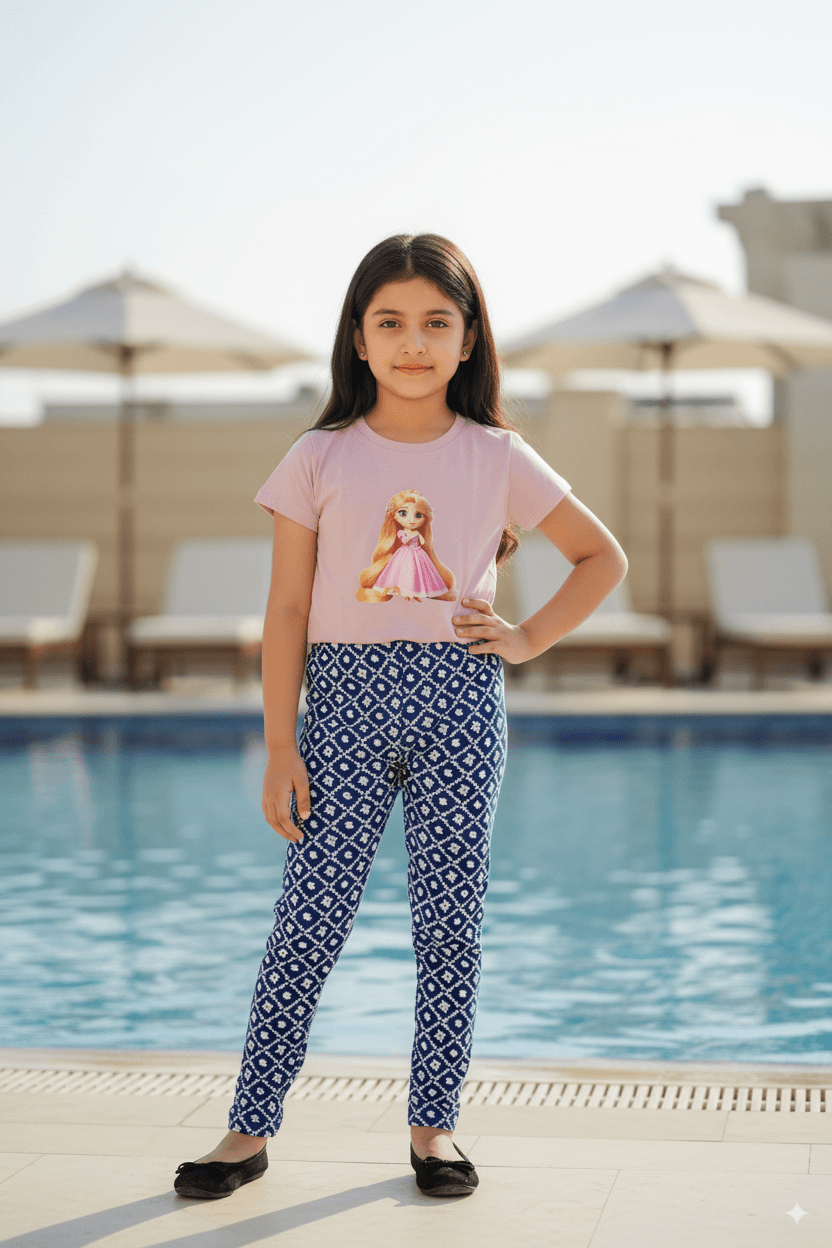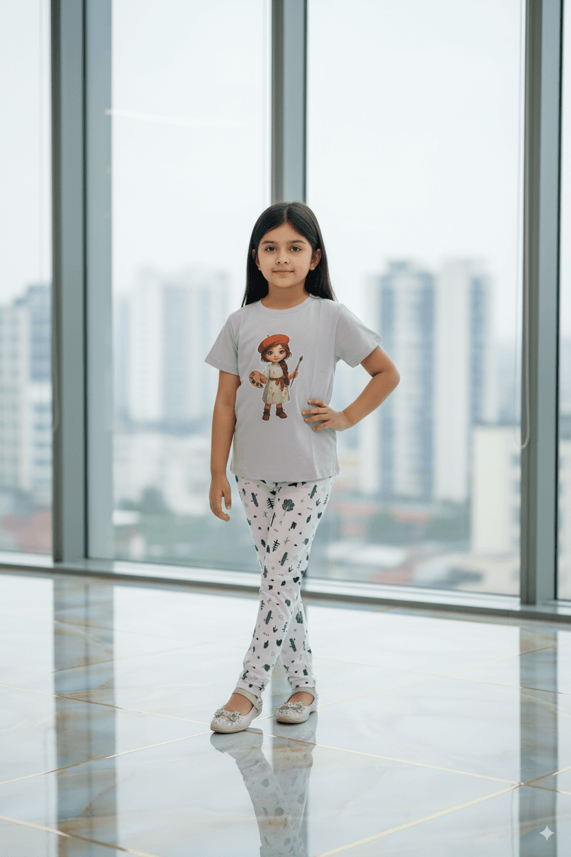 গার্লস লেগিংস এবং টি-শার্ট কম্বো সেট || Combo Code: OTL-A17 || Size 5-6 Years