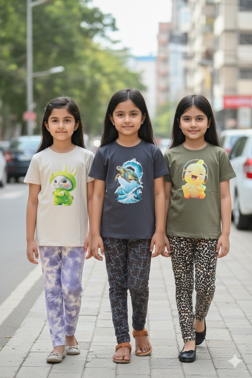 গার্লস লেগিংস এবং টি-শার্ট কম্বো সেট || Combo Code: OTL-701 || Size 7-8 Years